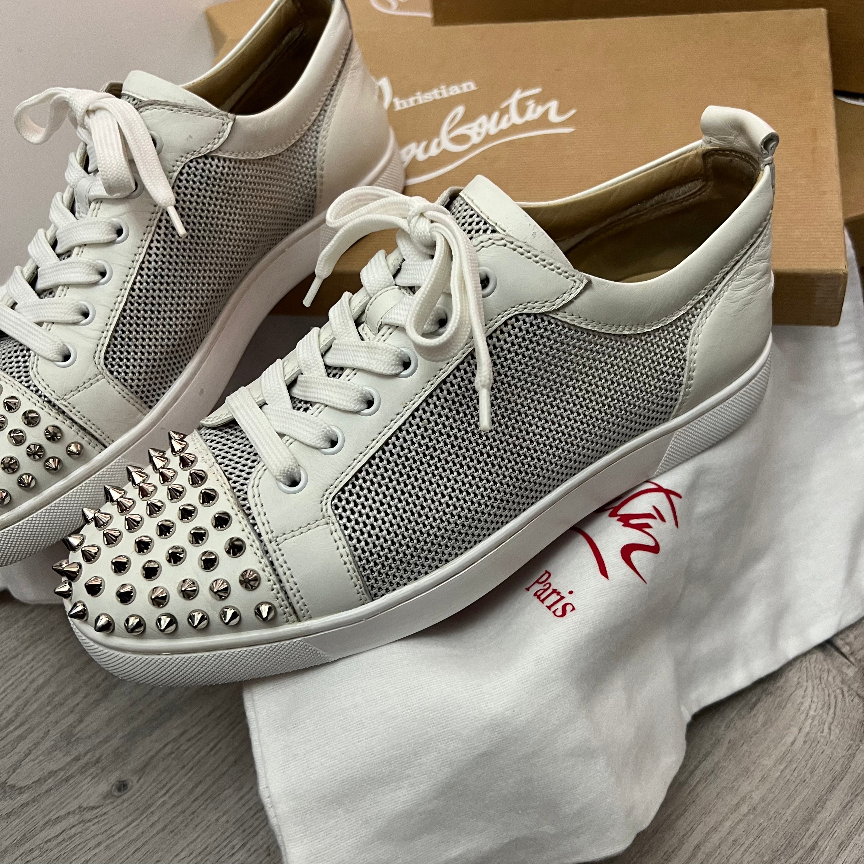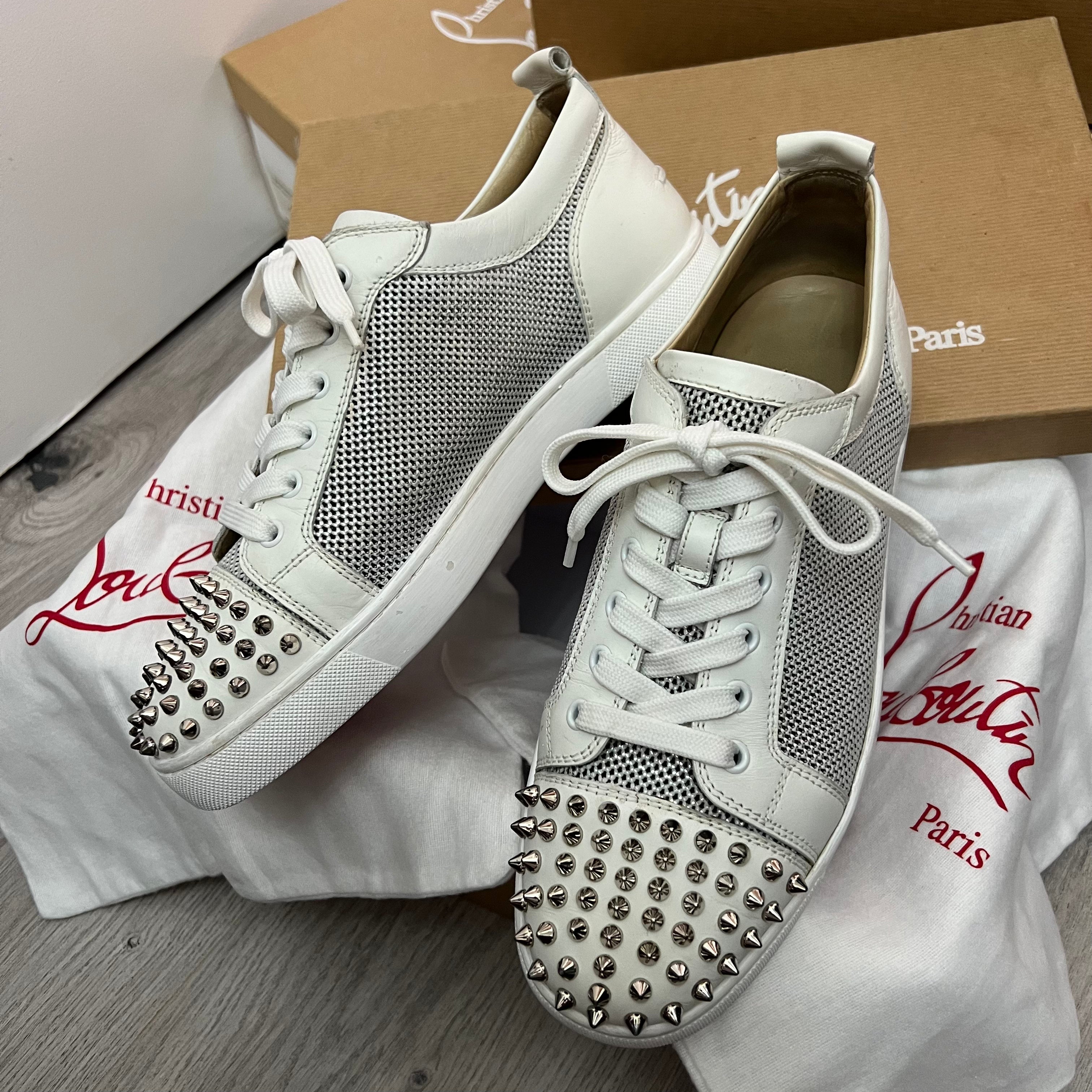 Authentic Christian Louboutin White Leather Mesh Sneakers 8UK 42 9US