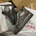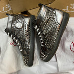 Authentic Christian Louboutin Silver Patent Leather Spikes Sneakers 7UK 41 8US