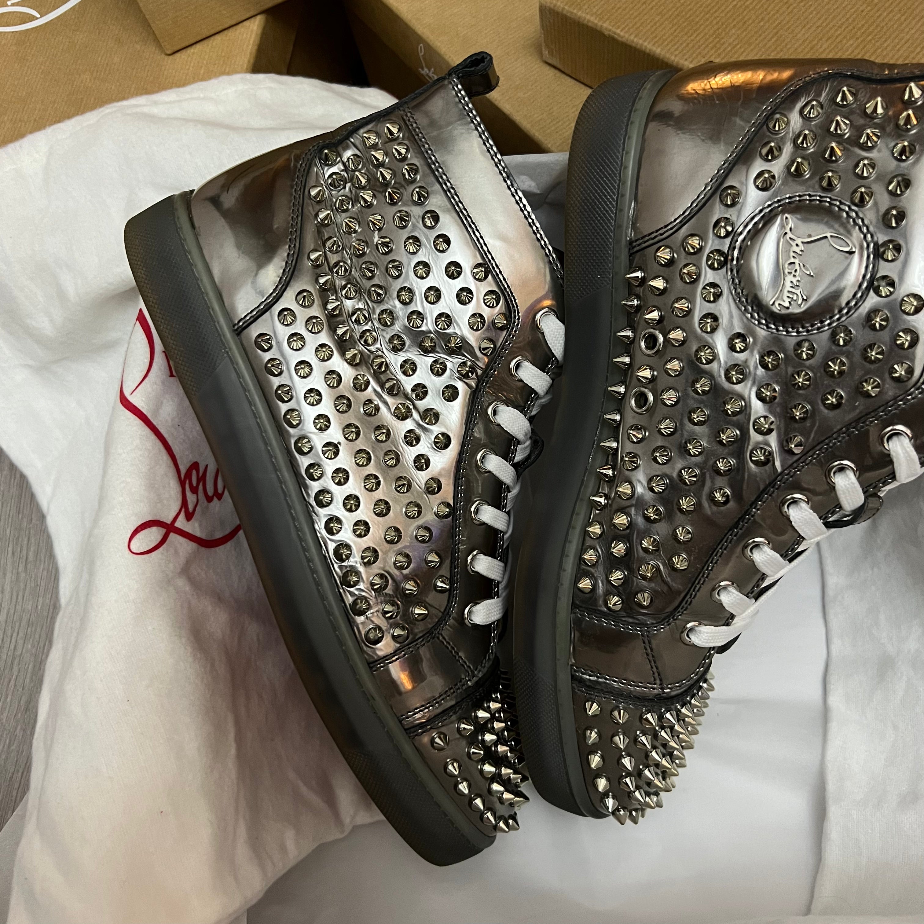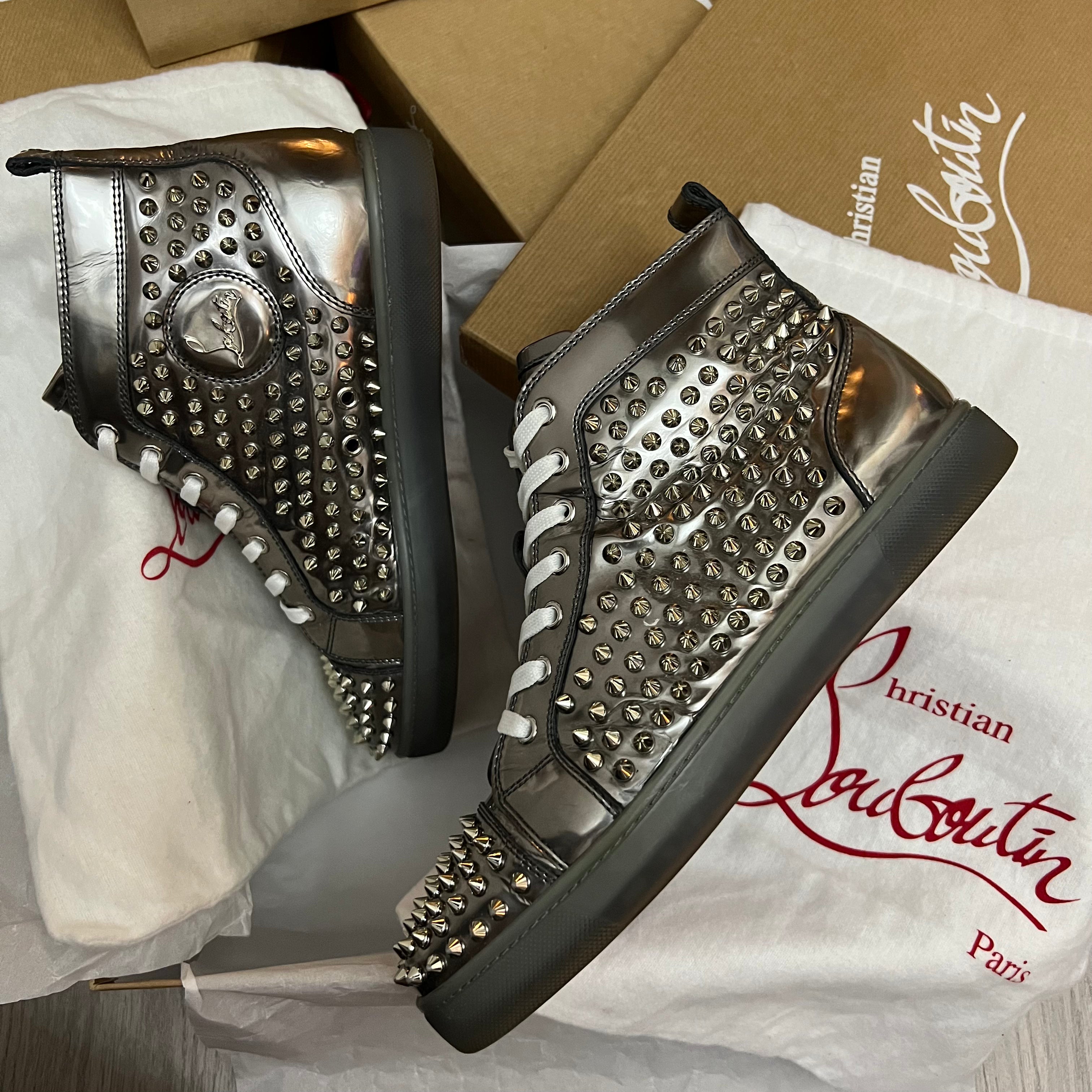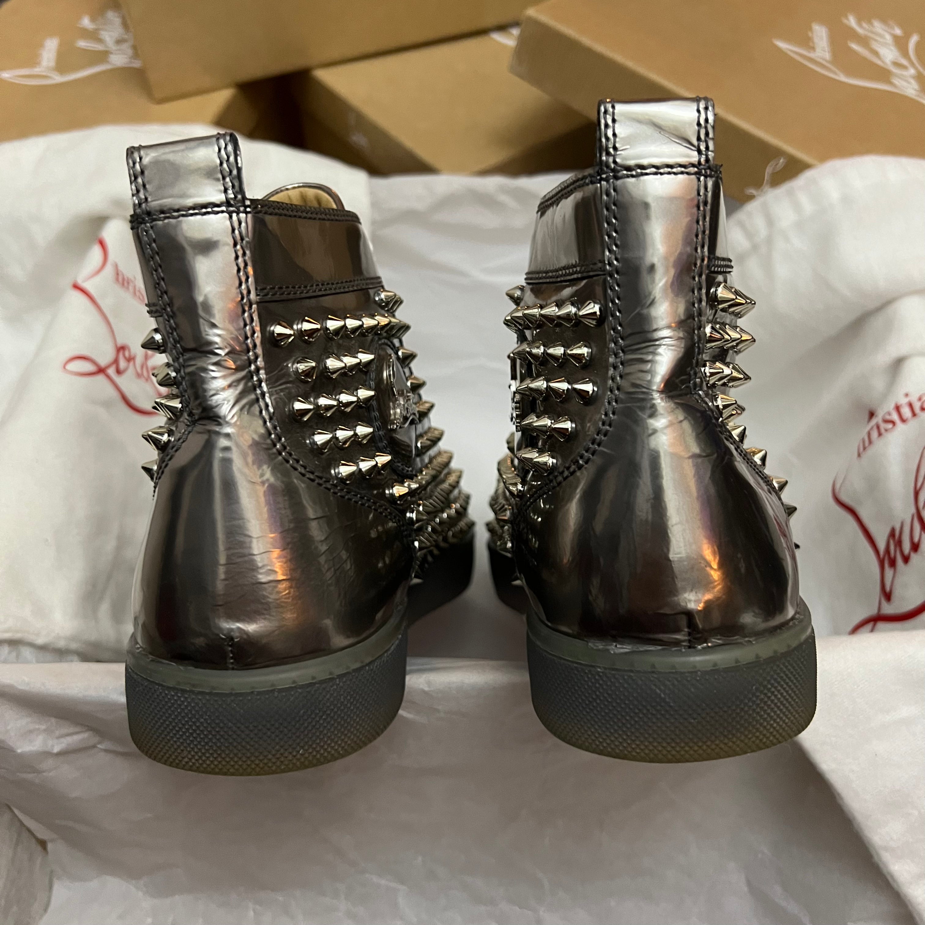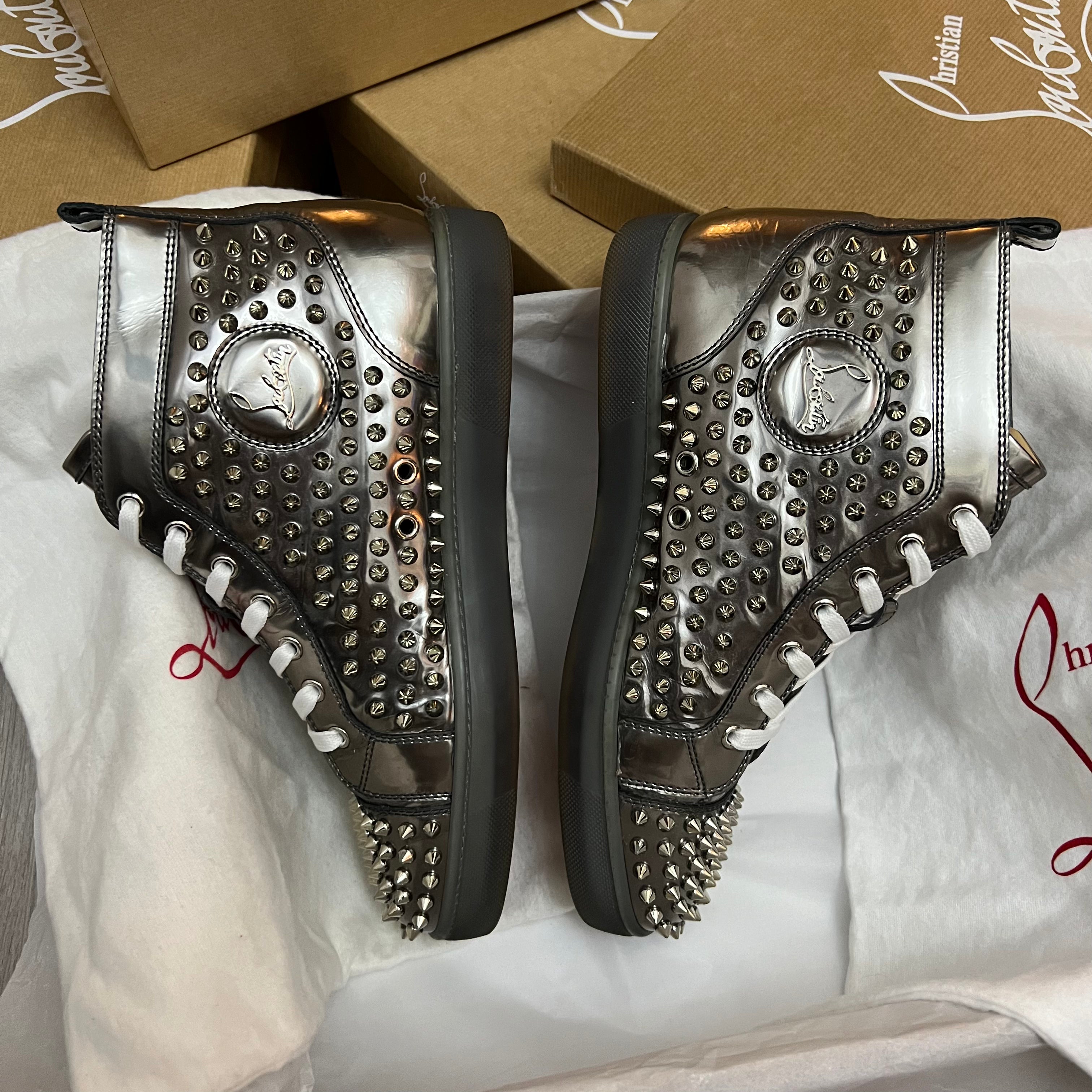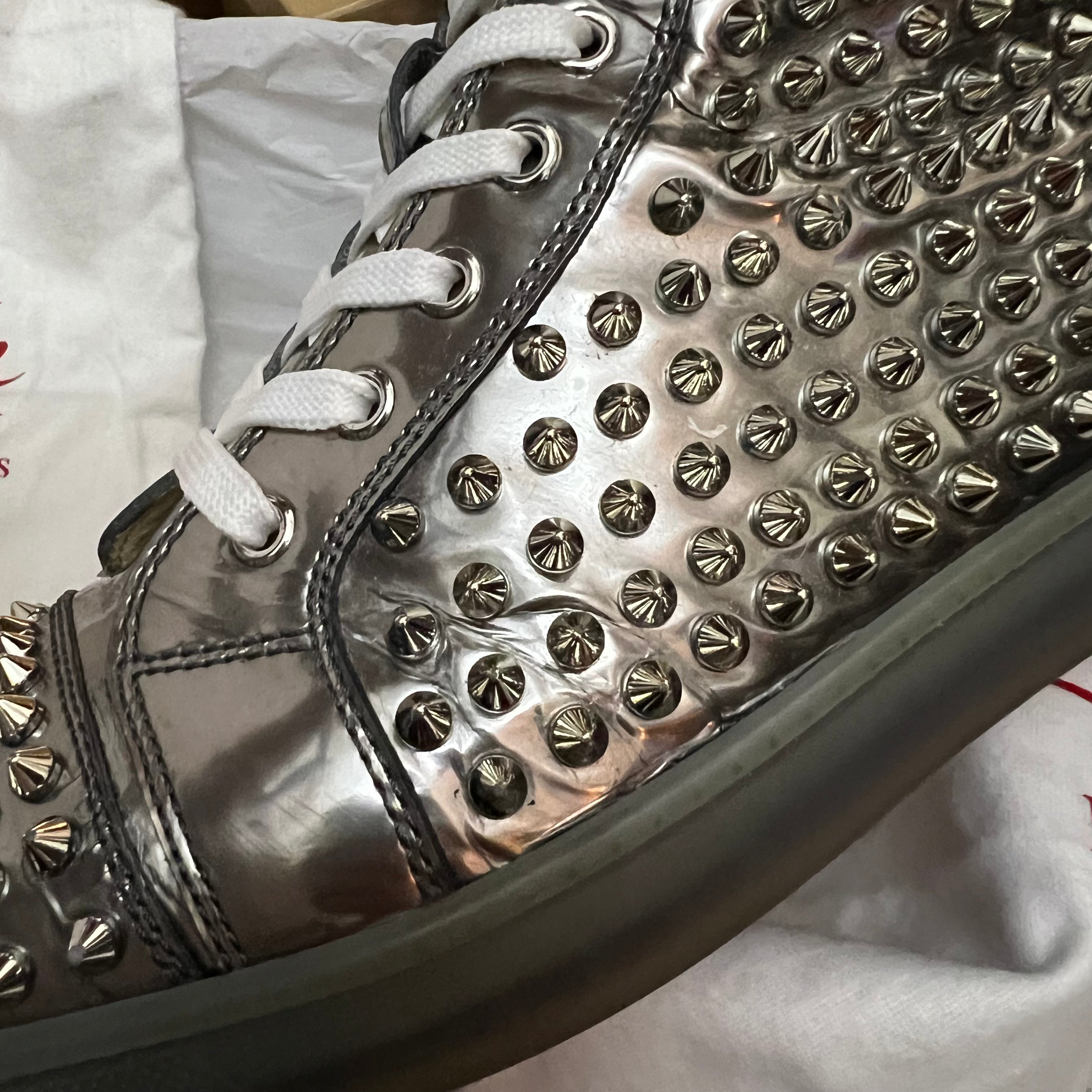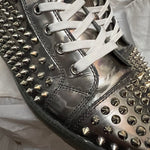 Authentic Christian Louboutin Silver Patent Leather Spikes Sneakers