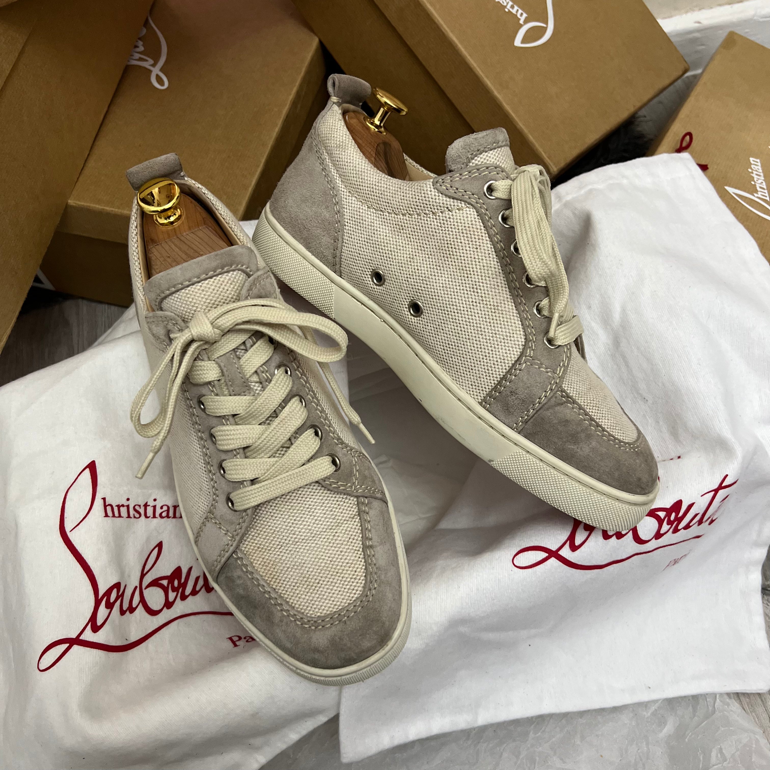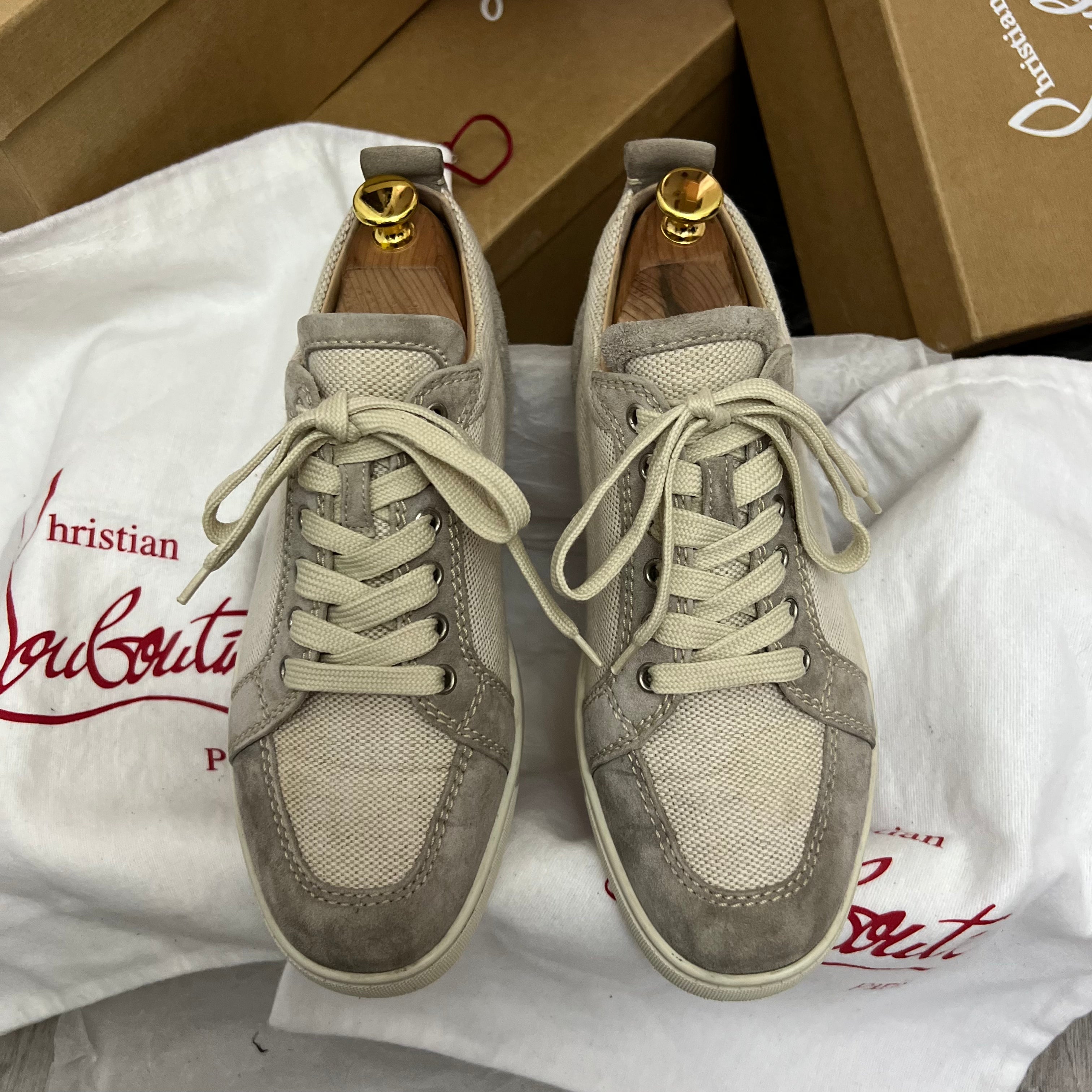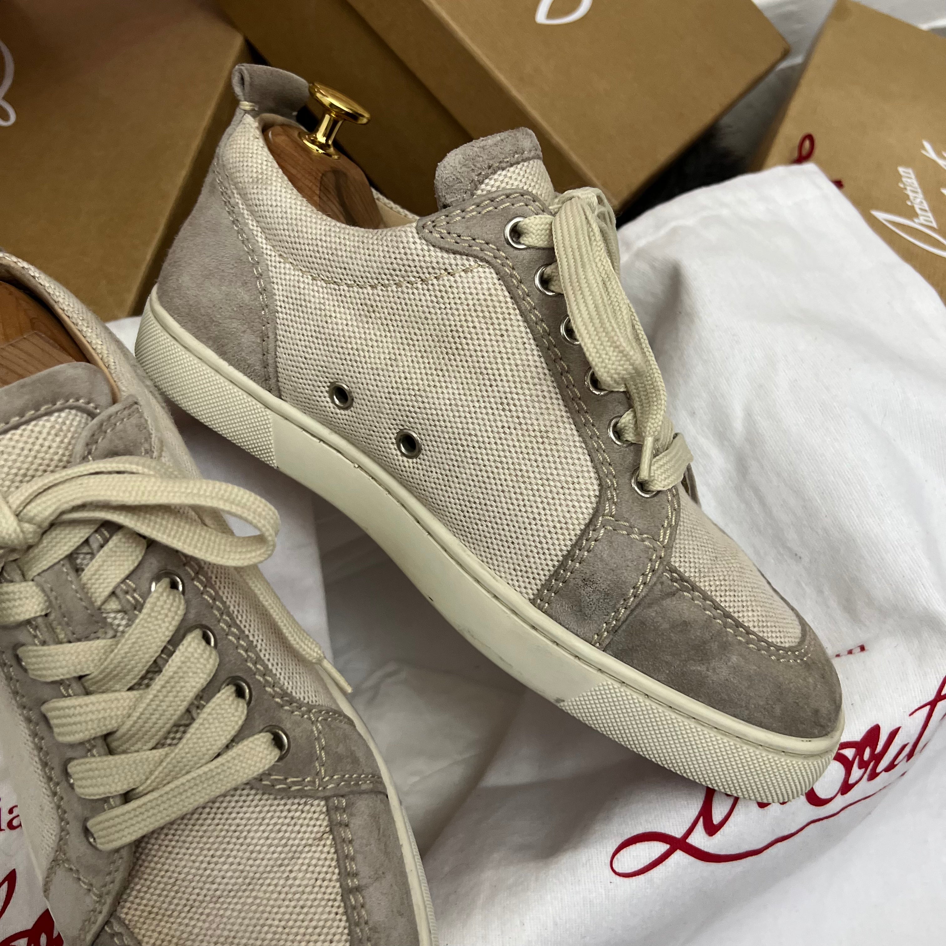 Authentic Christian Louboutin White Beige Woven Rantulow Sneakers 6UK 40 7US