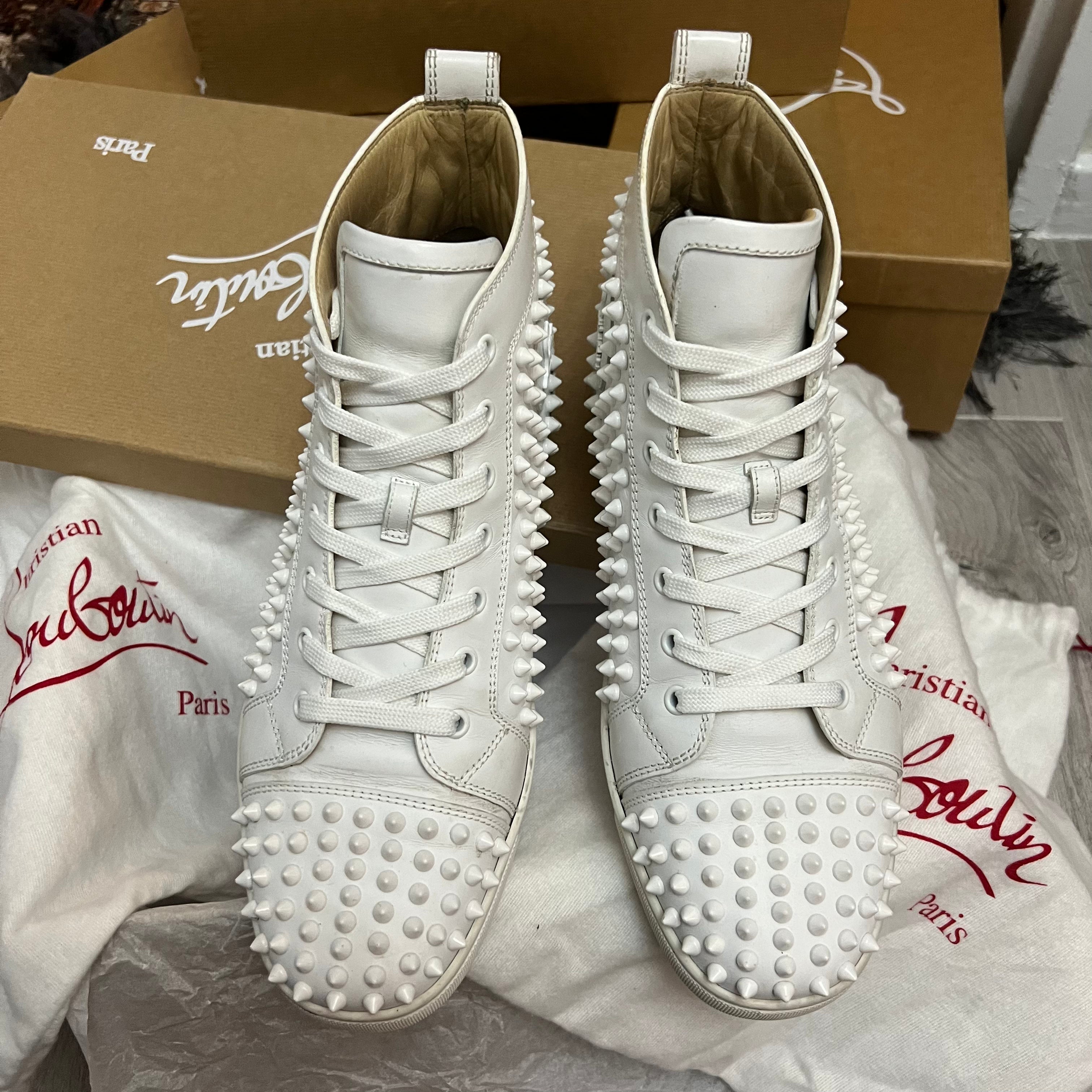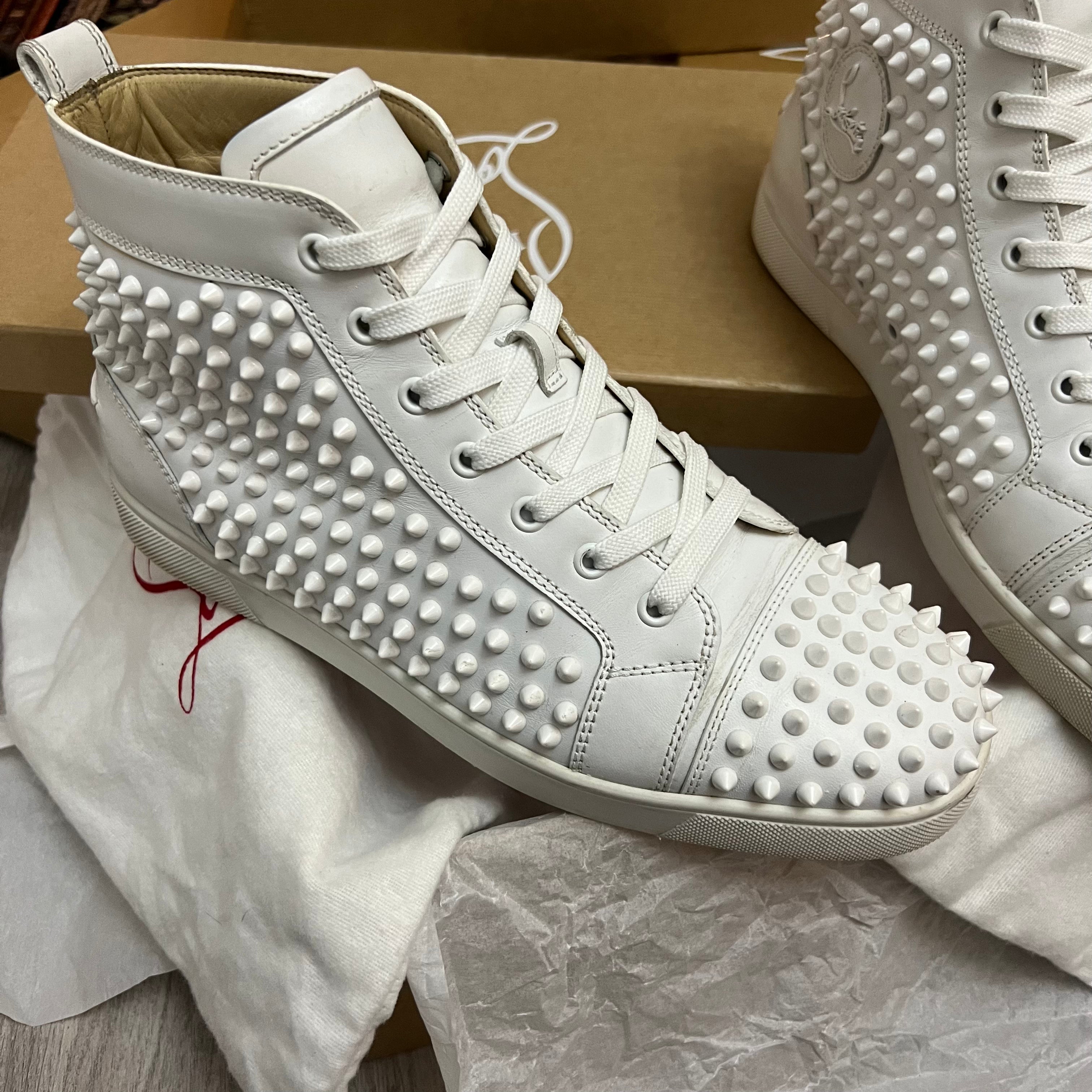 Authentic Christian Louboutin White Leather Spikes Sneakers 9UK 43 10US